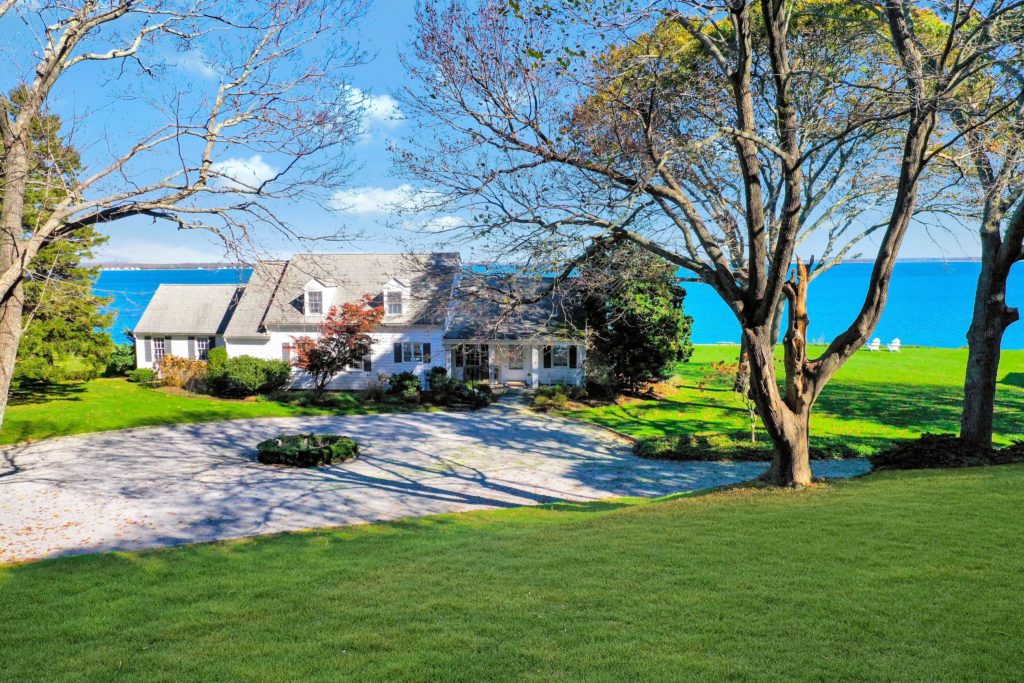 Located on the Nassau Point peninsula in Cutchogue, this waterfront estate has panoramic views of Little Peconic Bay stretching from Southold across the bay to North Sea along with 200 feet of private beach.