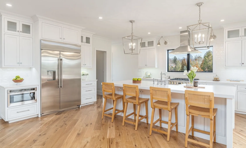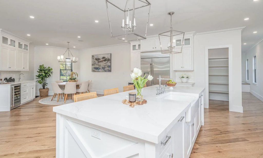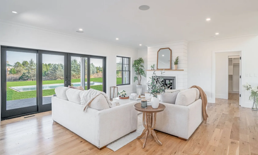 This ultra-luxurious home was built on a private cul-de-sac in 2022. Featuring four bedrooms and four baths, this house offers potential buyers an expansive two-story floor plan bursting with luxury and modern features. Enjoy summers relaxing by the 20 by 40 foot saltwater pool or take the short walk to the beaches of Mattituck. The property is listed for $1,985,000 by Aurora Property Group.