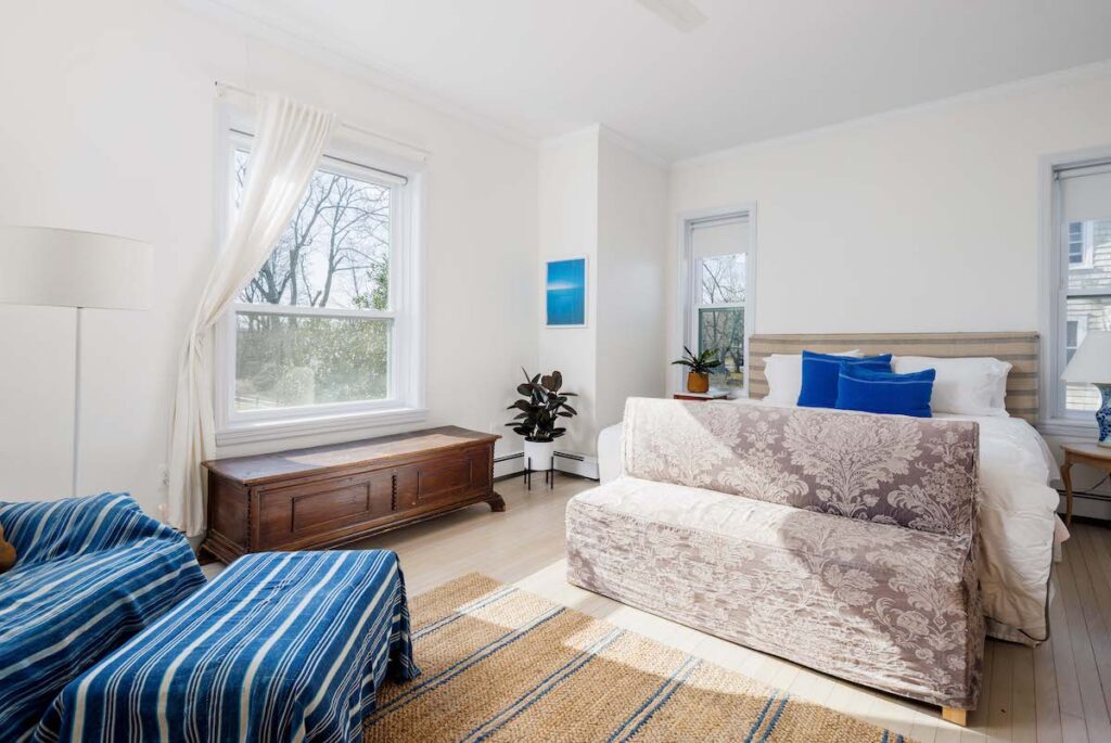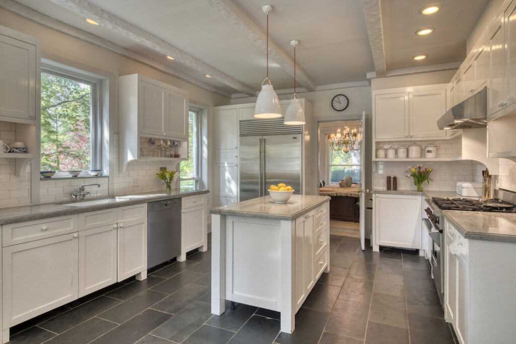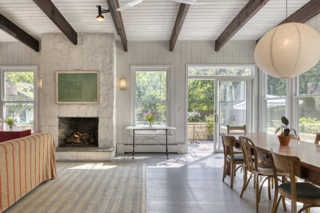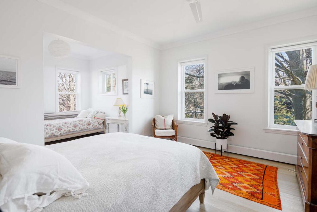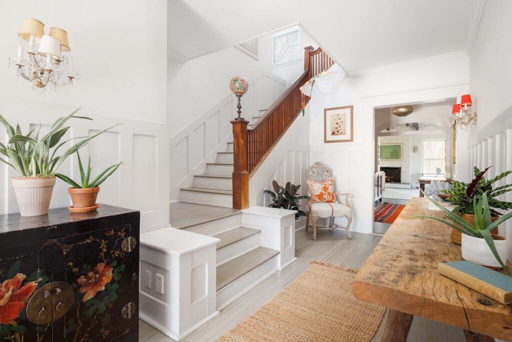 “The addition of the great room in the back gives you the added luxury of open modern living without sacrificing the historical integrity and beauty,” said listing agent Bridget Elkin of Compass Realty. “The downstairs is anchored by a generous foyer and center hall giving access to the kitchen, dining, library with fireplace, first-floor bedroom and enormous great room in the back – which also has a fireplace.”