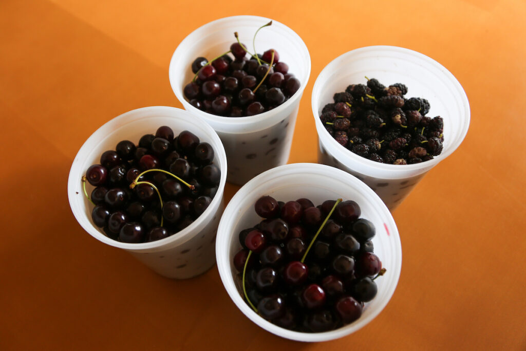During these walks, Dyla forages for an abundance of often-overlooked fruit. She began to forage simply out of curiosity. Using Google, she researched what she saw – Kousa dogwood, autumn olives, wisteria and wineberries. Soon, Dyla would bring a knife on her walk to cut away mushrooms and plastic pint containers to fill with berries.