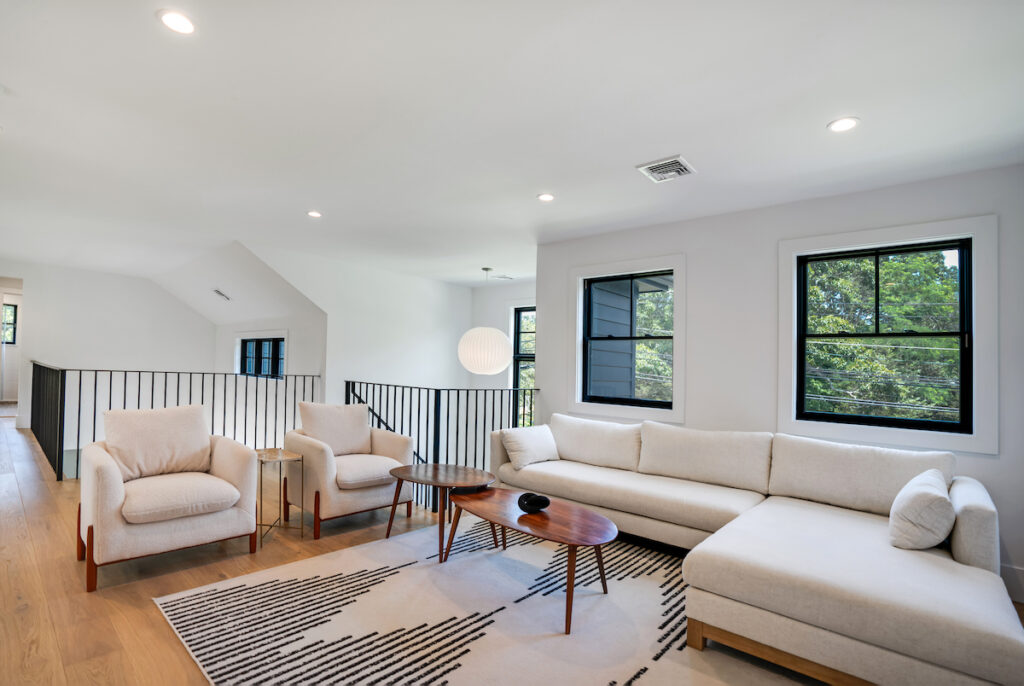 There are a total of six bedrooms and four and a half meticulously designed bathrooms throughout the home. Each bedroom is thoughtfully crafted, creating ample places to unwind after a busy day. The home also provides an abundance of tranquil spaces featuring plenty of natural light. An upstairs living room also offers another place to spend with friends, family, or just yourself.