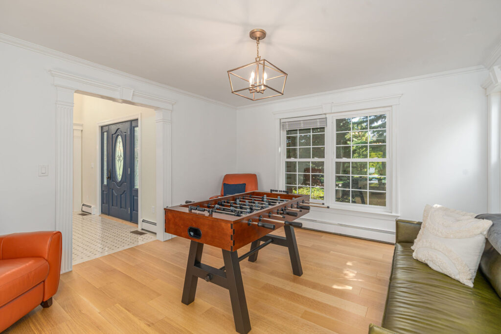 The 2,600-square-foot home is sited on .92 acres in the Chardonnay Estates section of Southold — what Naddell calls a “quiet cul de-sac community” with a backyard offering complete privacy and yet, is very accessible to town.
