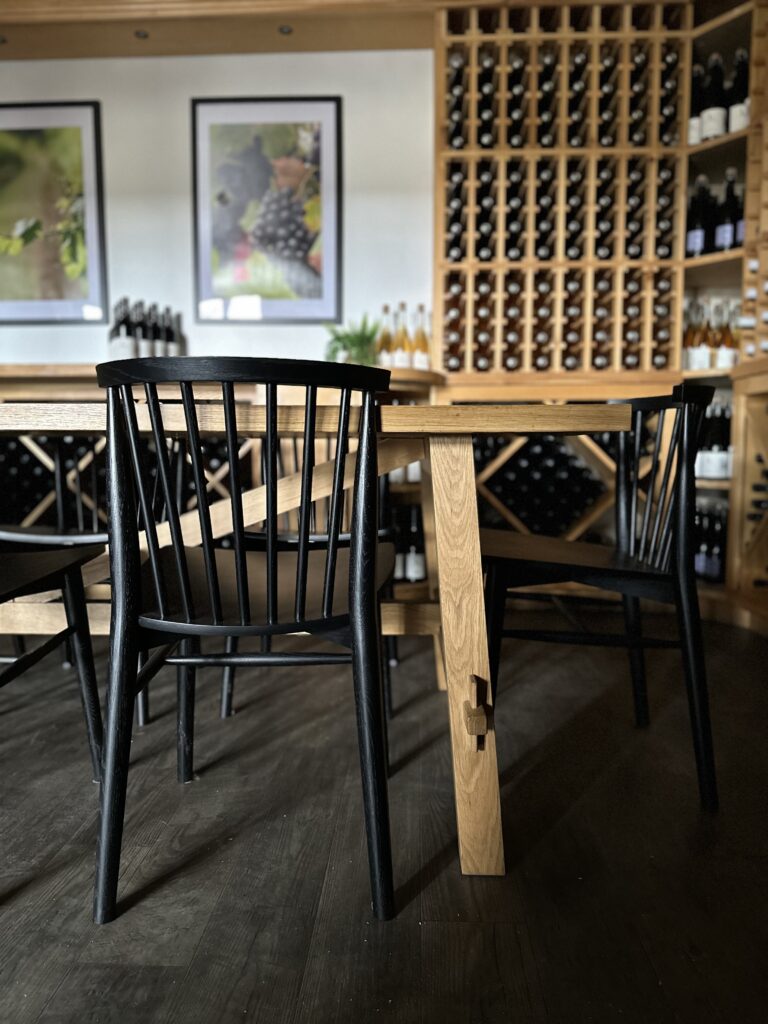 “We’re really looking for a modern, sophisticated, but light, airy, comfortable tasting room experience,” says Shelby Hearn Ulrich, general manager of Suhru Wines and Lieb Cellars partner. “We really wanted to showcase the wine, first and foremost, in a space that makes you feel as much outside as you can while inside.”