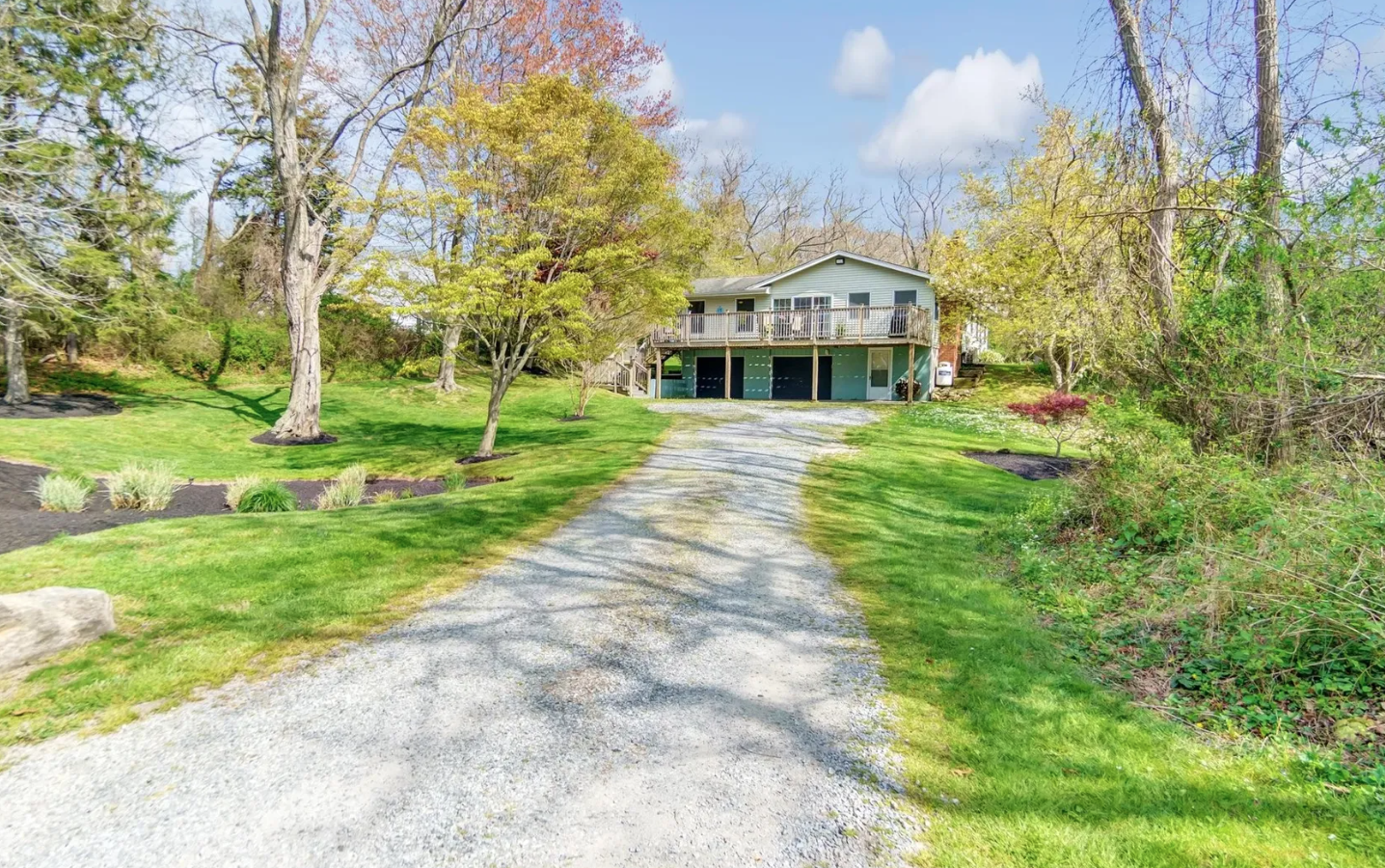Things to see: This cape-style home has a large deck with retractable awning and is surrounded by woods.