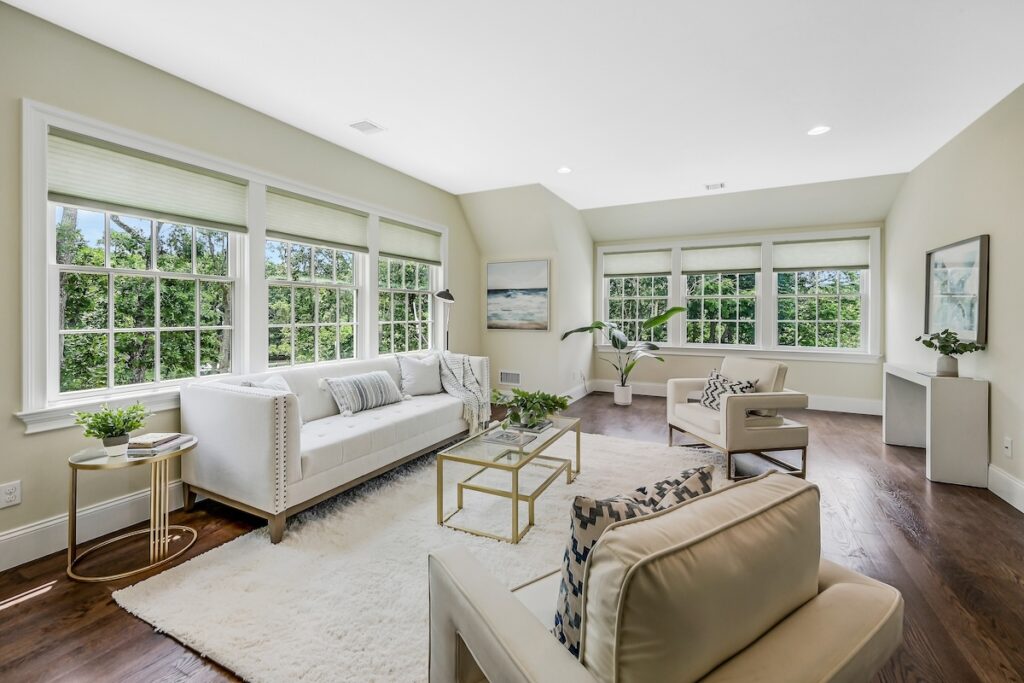 “The rooms all take advantage of the water views with transom windows and beautiful light coming in,” says Nancy Cervelli, who is co-listing the property with Barry Novick at Daniel Gale Sotheby’s International Realty. She said Paradise Point is a sought-after upscale community of homes on the bay.