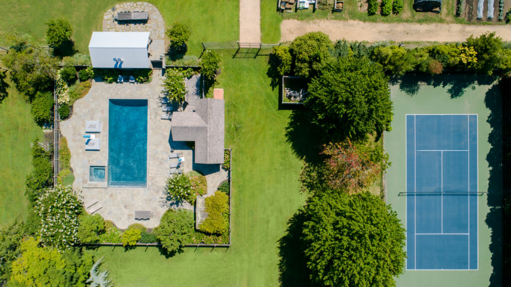 This bucolic 148-acre compound has a little bit of everything: waterfront access, a 60-acre certified organic farm, a one-acre chef’s garden, equestrian facilities and other outbuildings that have been customized for entertainment, wellness and guests. Set back from the main roads, it offers complete privacy and has its own ecosystems that support a variety of wildlife—quails, pheasants, songbirds, owls, and red-tailed hawks. As a working farm, the property had been operated as Indian Neck Organics, and has been outfitted with solar technology.