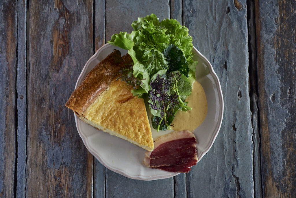 “Our salads change periodically, and the greens change as they are seasonally available,” says Hitchcock, who sources ingredients for “Ira’s Biodynamic Mixed Greens,” named for Ira Haspel of KK’s The Farm in Southold. “Currently, we are using their frisée [curly chicory], mustard greens and flowers, arugula, Toscano kale, green and scarlet mizuna, and red Russian kale. The goal is to keep it as fresh as possible.”