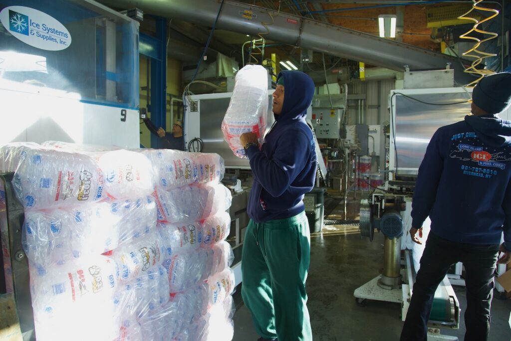 When Hurricane Sandy hit in October 2012, it acted as a stress test for the enterprise, which had successfully transitioned from block ice to packaged cubes, and from home delivery to business deliveries in the 20th century. October isn’t usually a peak time for ice, but when Sandy hit, demand was two to three times higher than on the busiest summer days — and while the plant only lost power for a couple of days, there was no way to make enough ice for the thousands of Long Island households that desperately needed it.