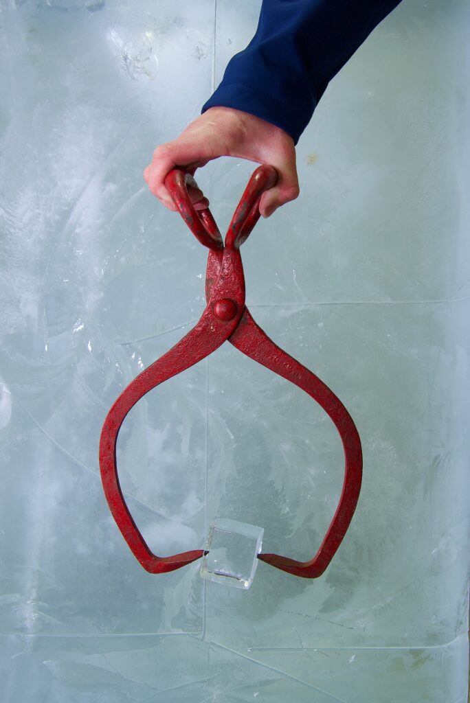 Around the turn of the 20th century, mechanical ice-making started to take the place of cutting blocks of ice from naturally frozen freshwater, and A.W. increased the factory’s capacity from five tons a day in 1900 to 40 tons a day in 1915. Under his leadership, the business continued to grow until after World War II, when the block-ice business suffered a steep decline as homeowners began to trade ice boxes for refrigerators.