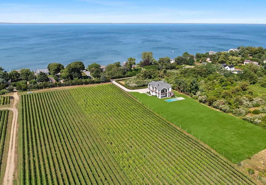 This newly constructed estate-style home is set among the grape vines and is a stone’s throw from Long Island Sound.
