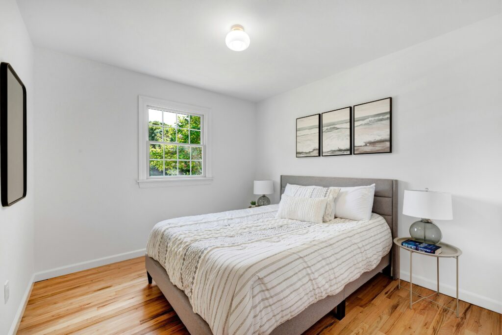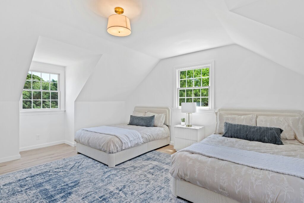 The seller completely finished the attic space as a bonus room, with new white walls and hardwood floors. Peddy says, “It could be a perfect office, gym or nice room for storage.”