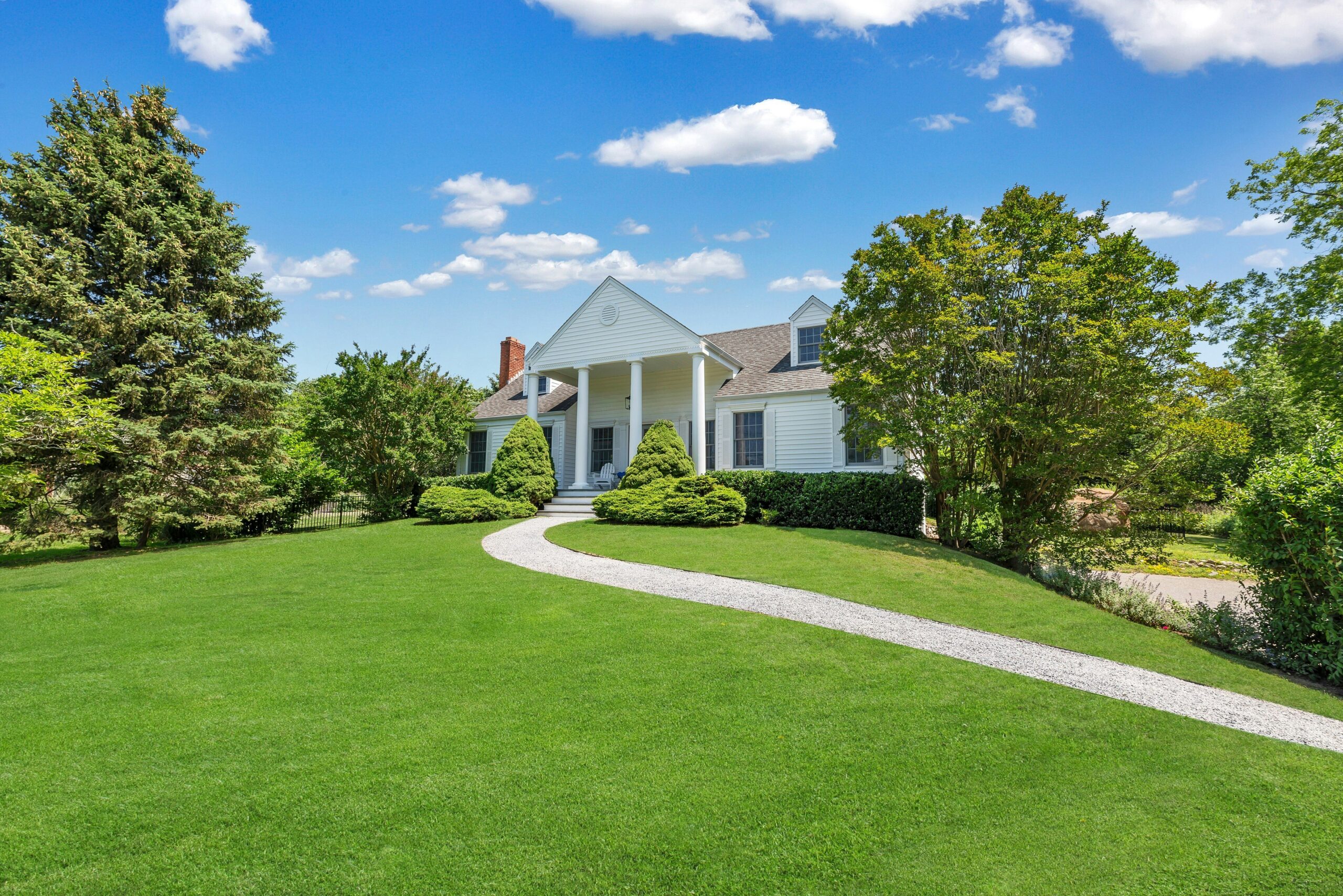 “This is a turnkey home with fine craftsmanship on the inside that you don’t see in a lot of older homes,” Peddy says. On the outside, she says the grand Greek columns and the house’s position on a hill, “is almost traffic stopping—you can’t help but stop look at this house. It definitely stands out as a unique, special property and not typical of the North Fork.”
