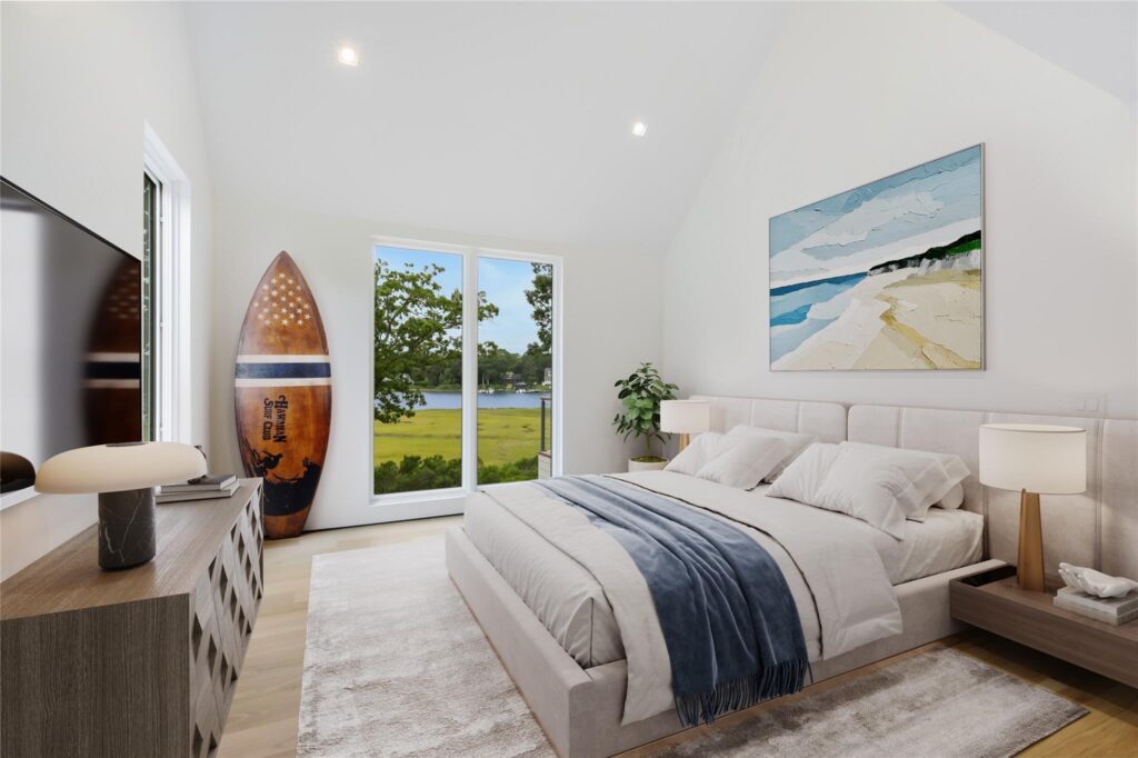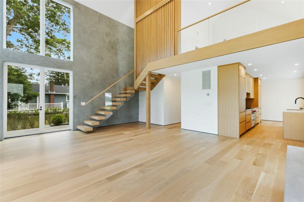 “This is new construction with modern open living situated on East Creek and close to all that the North Fork offers,” says Springer, “a beach lifestyle near the great Peconic Bay, golf courses and wineries and a marina 500 yards away.”