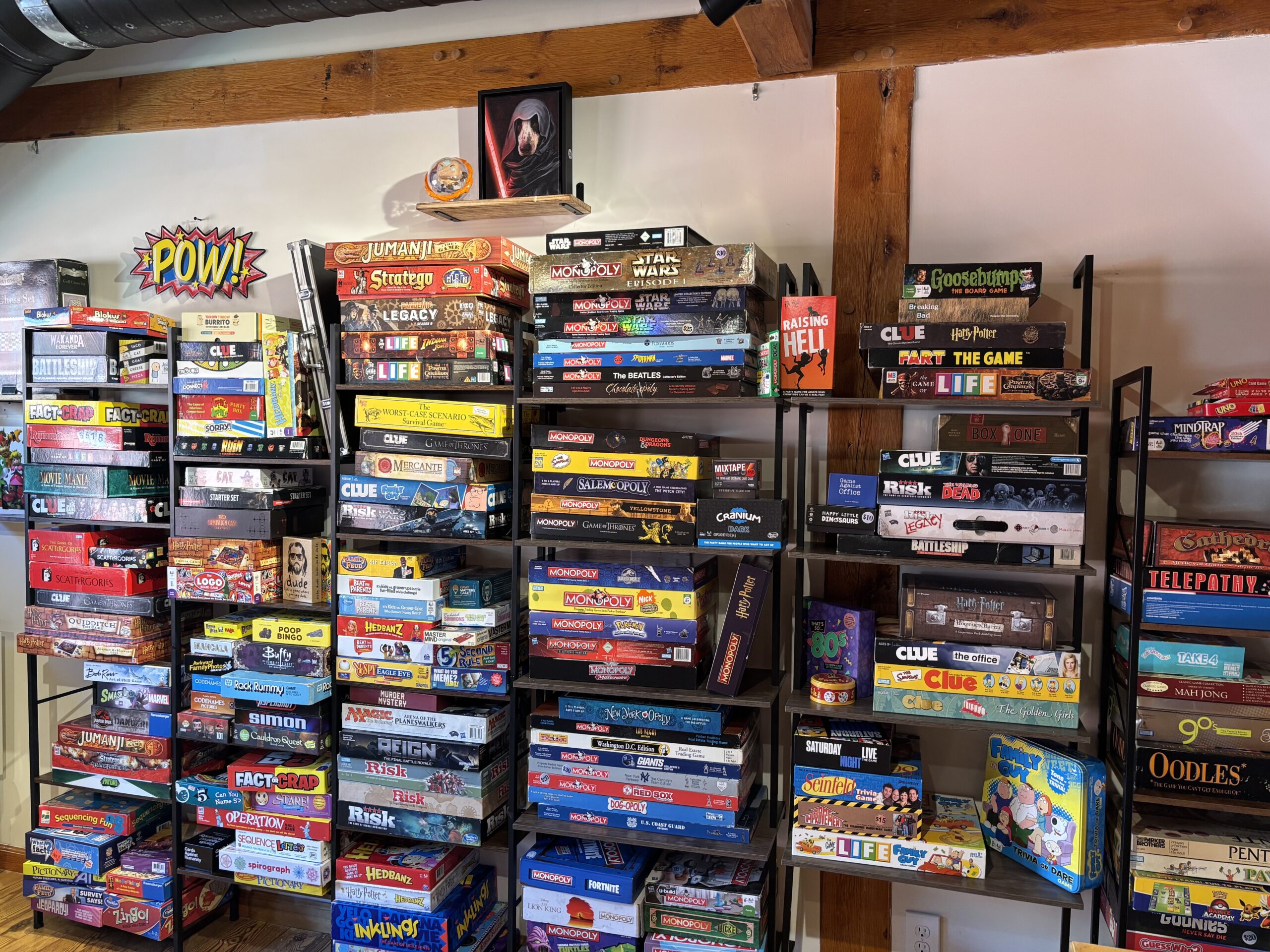 The board game cafe opened the first week of September with over 400 board games, including 36 kinds of Monopoly, Skee-Ball and a foosball table. The downstairs candy bar is stocked and growing to feed the passionate players, plus Buglione encourages people to come by with takeout from Latin Fuzion or other local eateries to fuel their enthusiasm.