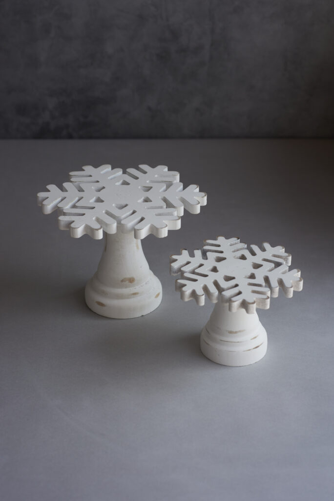 5. Audrey’s Home Décor Small Snowflake Pedestal, $22.95, and Large Snowflake Pedestal, $34.95 Prop up appetizers and small dishes on this wintry piece. Perfect for entertaining, its neutral colors match any dinner table’s vibes.