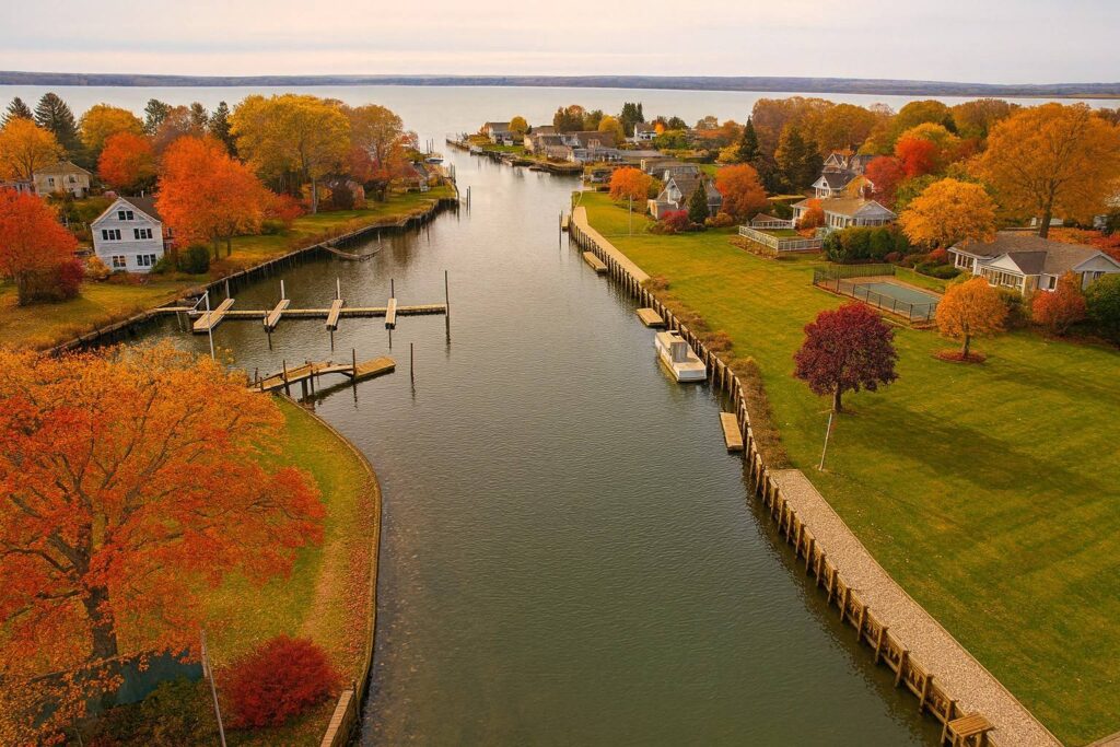 The home by the Lagoon is 1.3 miles from the village of South Jamesport. South Jamesport Beach and tennis courts are just beyond—1.7 miles from the home. The center of Jamesport is 1.4 miles and intersects with the Route 25 wine route.