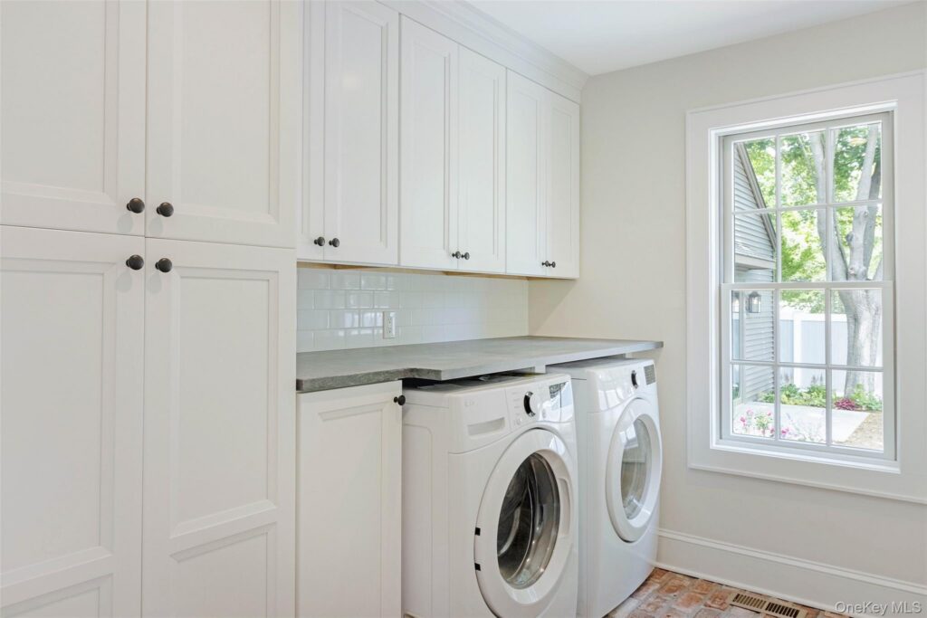 This Greenport abode, situated between the village and the beach, offers a traditional envelope with a contemporary interior. Built by North Fork contractor Boger Construction, listing agent William Walters says the craftsmanship in the home is evident — from the custom millwork to the details such as the build-ins and hand-cut red-brick floor in the mudroom. Walters is representing the listing through Daniel Gale Sotheby’s International Realty.