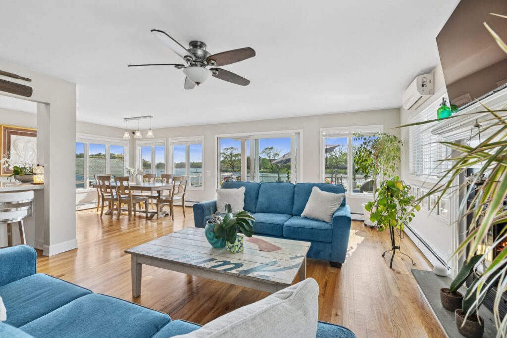 The private dock is deep water and Meetinghouse Creek leads out to the Peconic Bay, so water and boating enthusiasts of all sorts can find a place to dock. “There’s plenty of room for toys,” says Shackel. Located in the Hoccabauk Park neighborhood, residents in this five-block enclave have access to a private beach.