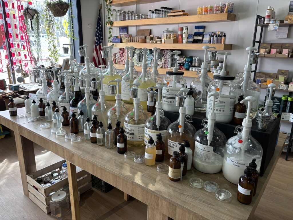 The shop carries a variety of products, including scented and unscented shampoo, conditioner, body wash, shower gel, lotion, all-purpose cleaner, baby wash and baby shampoo. Customers are expected to bring their own container, which is weighed when they arrive and weighed after they refill it to be rung up.