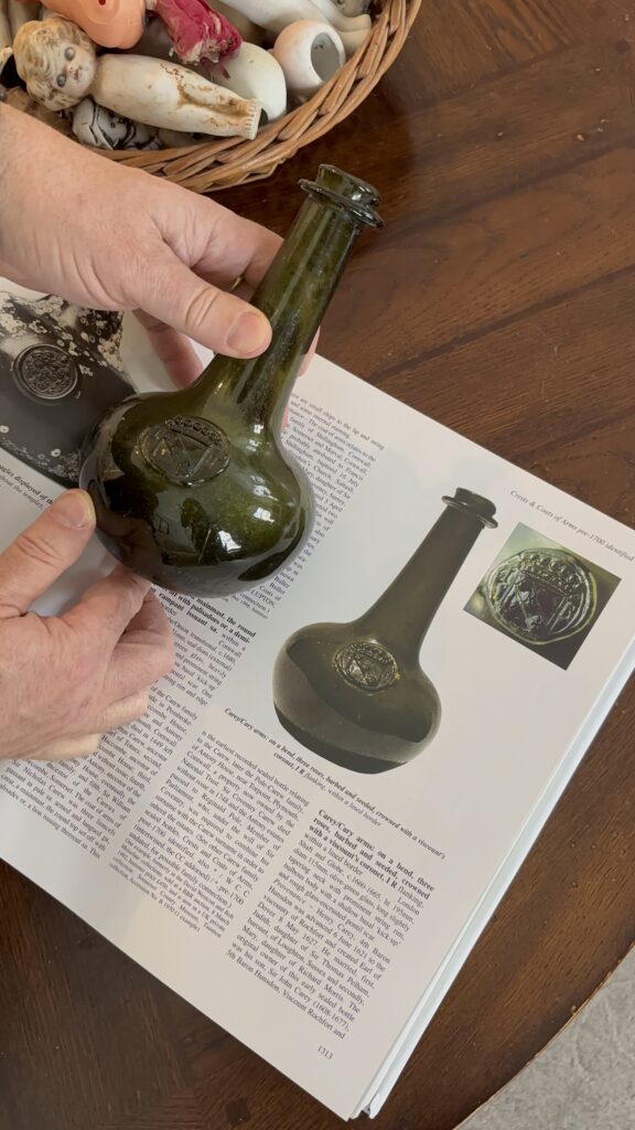 “As I was educating myself, reading more books and getting more and more involved in different clubs and shows, I started getting into the English [wine] bottles,” says Affatato. “There are a couple of reasons why I only collect English bottles. In the pecking order — the market establishes what the value is — English bottles are by far the highest value and the most attractive collectability, categorically speaking, of all the bottles.”