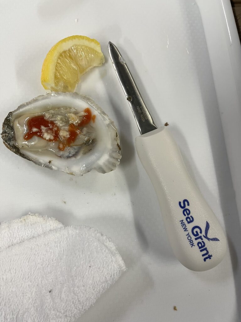 But after I attended New York Sea Grant’s recent oyster shucking workshop, which included a dozen of the tasty bivalves and a brand-new oyster knife, I feel a lot more confident in safely opening the shells of these tough little creatures.