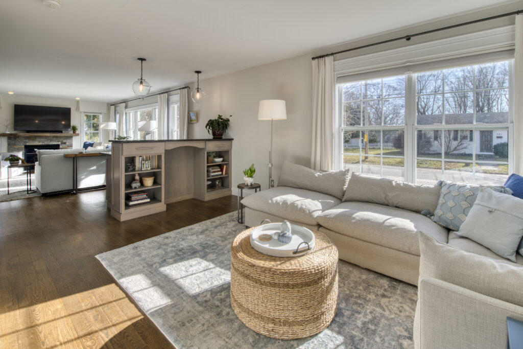 “It’s very understated, but beautiful and homey,” says JoAnn Wind, the agent representing the listing at Daniel Gale Sotheby’s International Realty. “The owners were perfectionists in their renovation and maintenance.” She notes that a professional designer helped infuse the home with extra touches such as custom window treatments and wall paper.