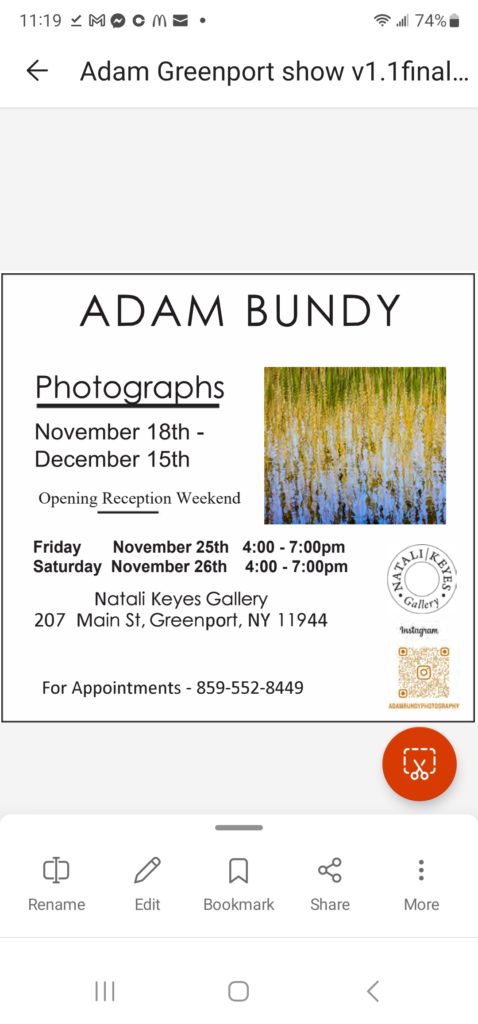 Natali Keyes gallery is presenting the work of Adam Bundy. Adam lives full time on Shelter Island is nature and landscape with an unbridled passion for the sheer beauty of the East End of Long Island.