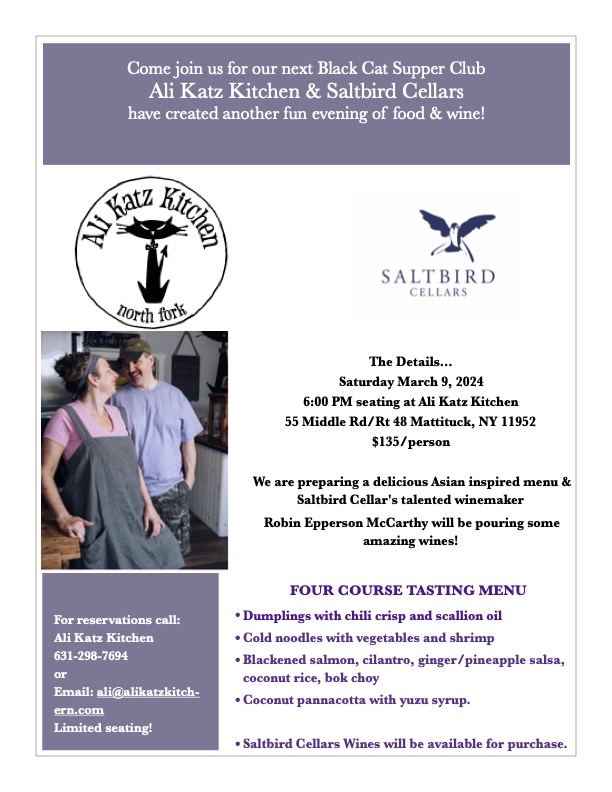 4 course tasting menu by Allison Katz Kitchen with paired Saltbird Cellar Wines.
