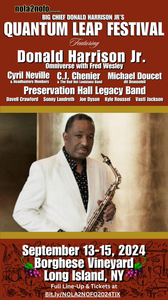 Join us for our inaugural 3-day multi-genre music experience on the grounds of the oldest vineyard on Long Island along the beautiful coast of North Fork, Long Island, curated by NEA Jazz Master and the architect of “Nouveau Swing,” Big Chief Donald Harrison Jr.