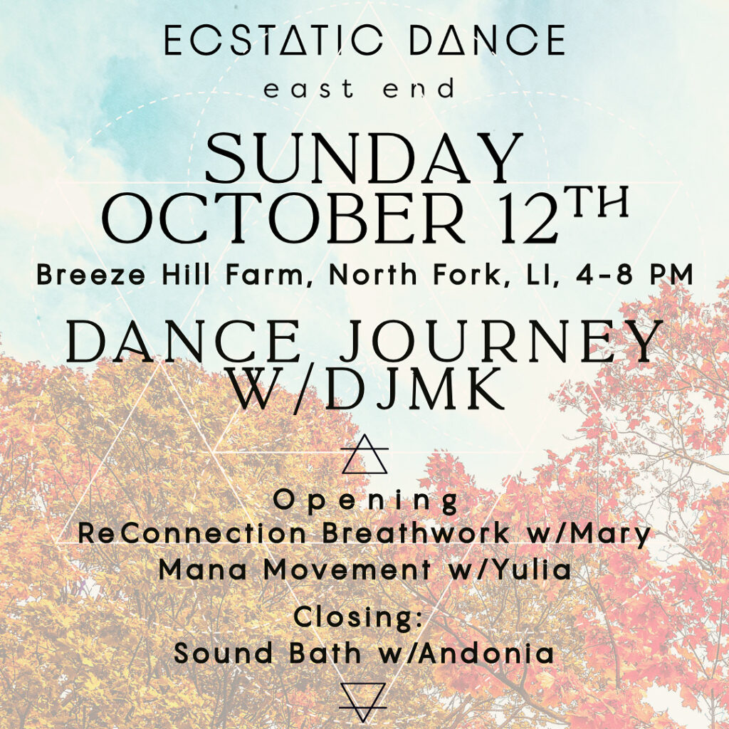 Ecstatic Dance is a freeform movement journey, guided by an embodied DJ who intuitively weaves sound to support personal expression and collective connection. Within a safe and sacred space, dancers are invited to explore their unique rhythms while attuning to a shared, universal energy.