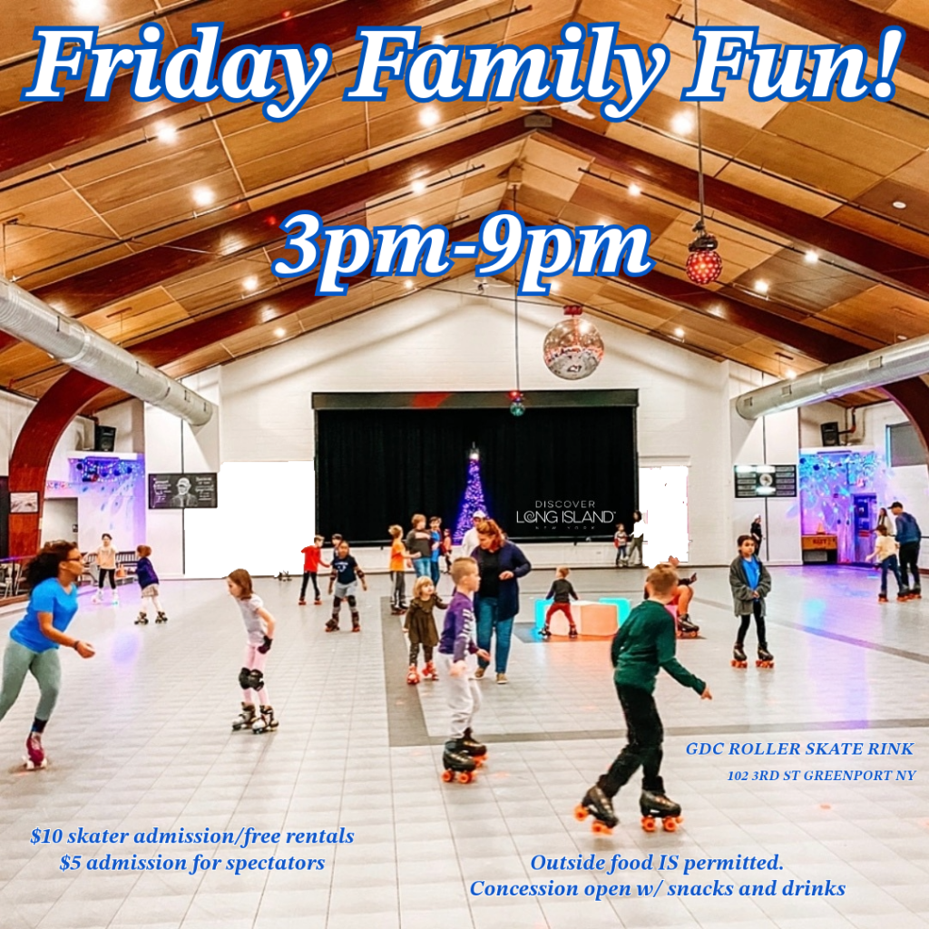 We are open every Friday night year round! Enter anytime during the 6 hour session. Free rentals or bring your own quad skates or inlines. Concession stand, premium rentals, free instruction, tons of fun!