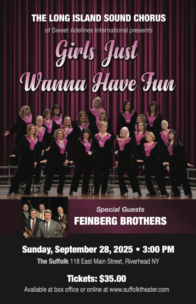 The Long Island Sound Chorus of Sweet Adelines International based in Hampton Bays, NY will be holding its Annual Show on Sunday, September 28, 2025 at 3:00 p.m. at The Suffolk Theater in Riverhead. Guest Performers are The Feinberg Brothers. Tickets available at the box office or online at www.suffolktheater.com