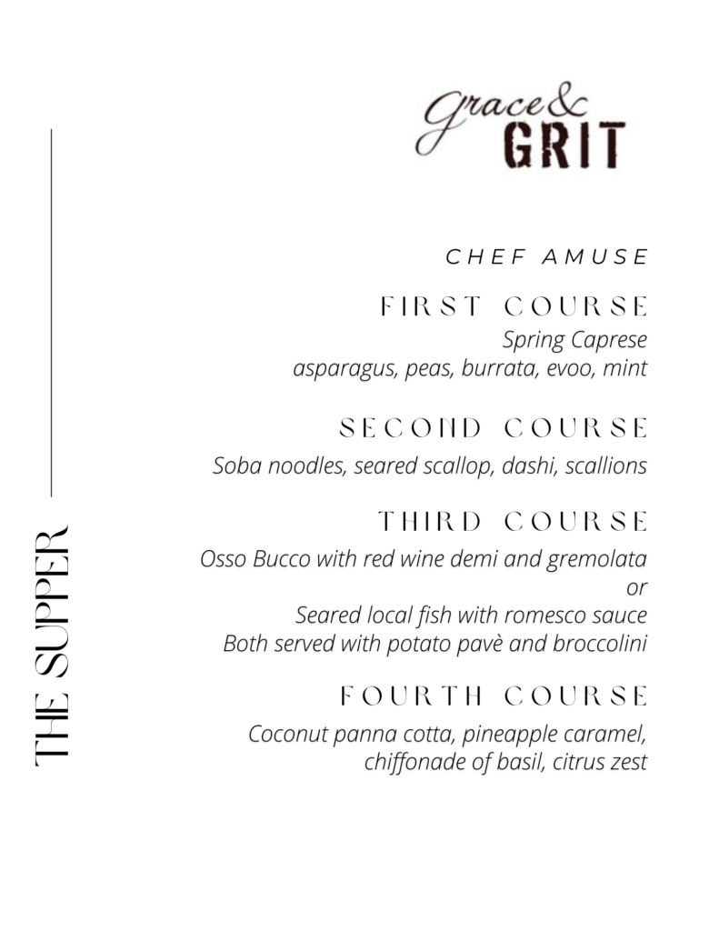 Join Grace & Grit for an intimate dine-in experience. Chef Adam has curated a special four course paired menu that highlights some of his favorite ingredients and foods. Seating is limited!