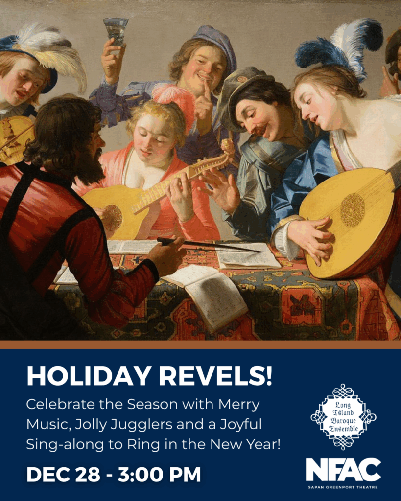 Join us for an unforgettable afternoon as world-class performers from LIBE lead this festive celebration. Holiday Revels features timeless works, new and old, to celebrate this holiday season, performed by singers, instrumentalists and circus artists. Presented with Long Island Baroque Ensemble: Margo Andrea, Artistic Director.
