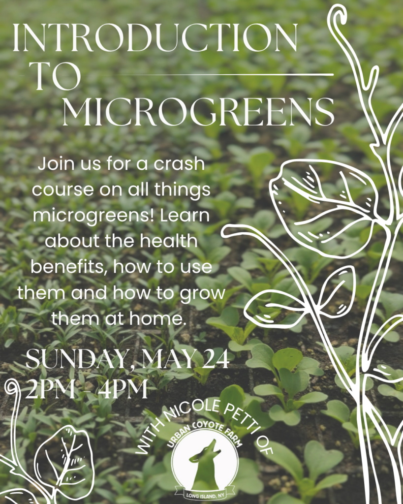 Join farmer Nicole Petti for a crash course on all things microgreens! In this hands-on class, we’ll learn about the health benefits of these edible seedlings, as well as how to use them and grow them at home.