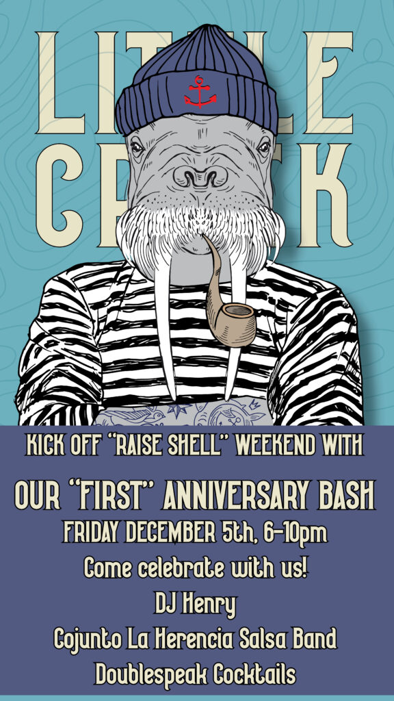 Little Creek is excited to celebrate its first anniversary in their new digs on Carpenter Street! What a year it has been for all- come blow off a little steam with DJ Henry spinning lounge vibes and live salsa band Conjunto La Herencia in the Hold Fast space! DoubleSpeak Cocktails will be crafting a unique bar menu for the celebration.