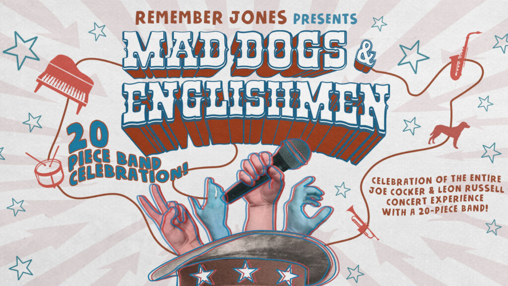 Celebrate Joe Cocker’s groundbreaking live album and tour, MAD DOGS & ENGLISHMEN! Serving as a dedication to Joe Cocker and Leon Russell, the show will be recreated with a 20-piece band in similar style of the original tour including, for your delight, Cosmic Kiddies, English Roadies, Children with the Answers, Cooking Italians, Presidents of Recording Companies, Acrobatics and Displays, The Odd Sane Dog, The Space Choir, Assorted Sound Freaks, and All Ele
