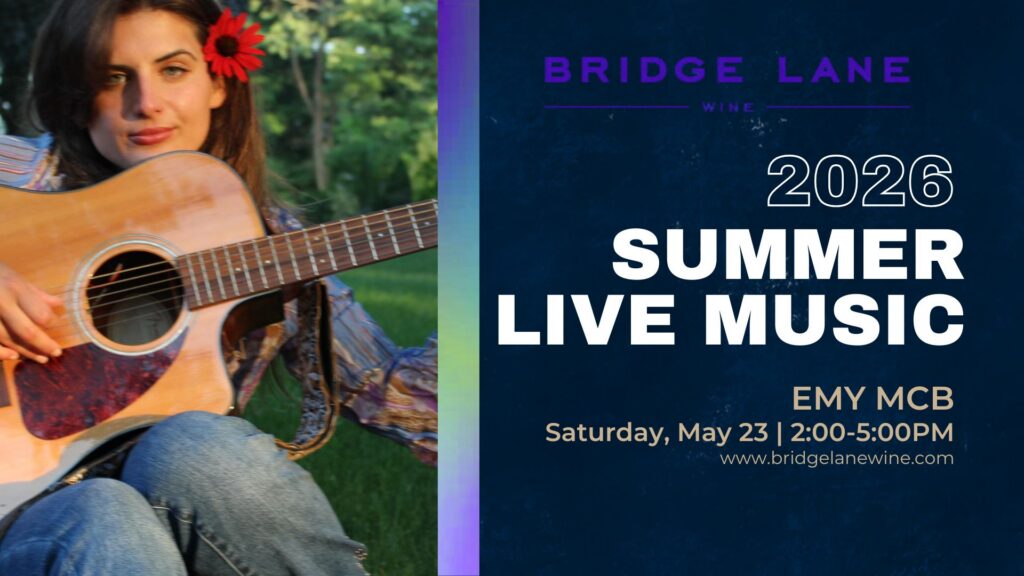 MDW Live Music with Emy McB Date & Time May 23, 2026 @ 2:00 PM - May 23, 2026 @ 5:00 PM Location , Website https://bridgelanewine.com/events/?mc_cid=0bd0a939f3&mc_eid=UNIQID Add to Google Calendar Add to iCal Social Share Share on Facebook Facebook Share on Twitter Twitter Share via Pinterest Share via email Email About Live music kicks off at Bridge Lane Wine Memorial Day Weekend with Emy McB performing from 2–5 PM on Sat, May 23. Join us for an afternoon of great wine, live tunes, and the perfect start to the season. Weather permitting.