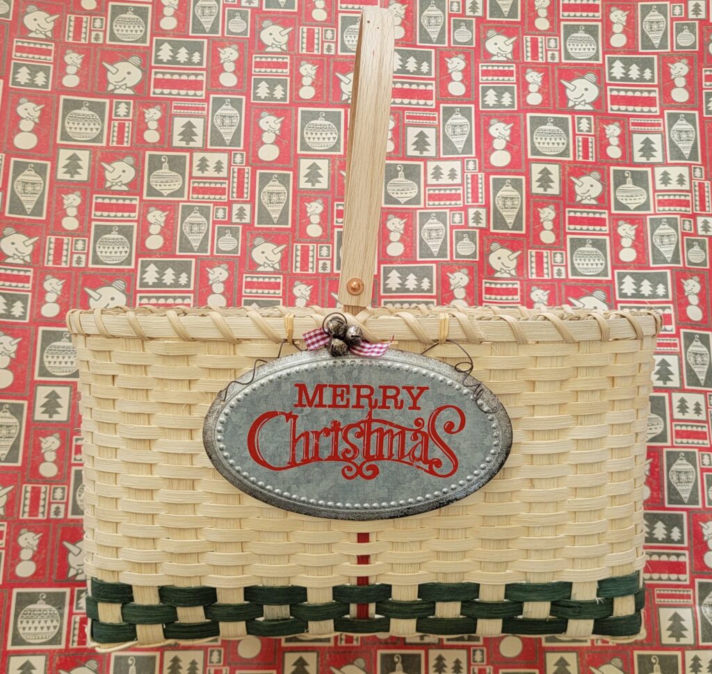 Make your own Merry Christmas basket. This will be your ultimate gift basket with its all filled base, Indian chain pattern, swing handles and a sign with bells!