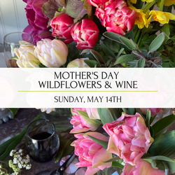 Enjoy an afternoon of wildflowers and wine at our Mother’s Day floral design workshop. Treat yourself and the special women in your life to this floral experience featuring a buffet of fresh seasonal favorites like heirloom tulips, ranunculus, & lilacs.
