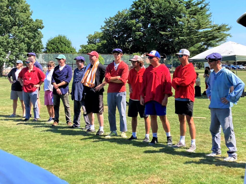 replica uniforms and plays an actual nine-inning game using replica equipment.