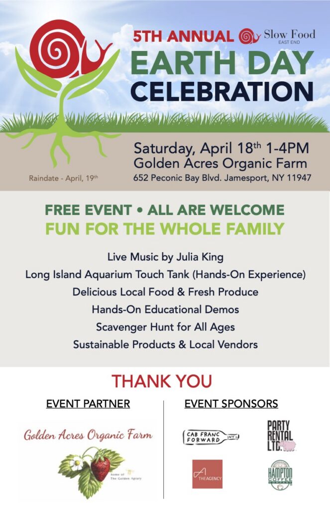 On Saturday, April 18, 2026 (Rain Date: Sunday, April 19), Slow Food East End invites the community to gather for its 5th Annual Earth Day Celebration at Golden Acres Organic Farm in Jamesport, NY.