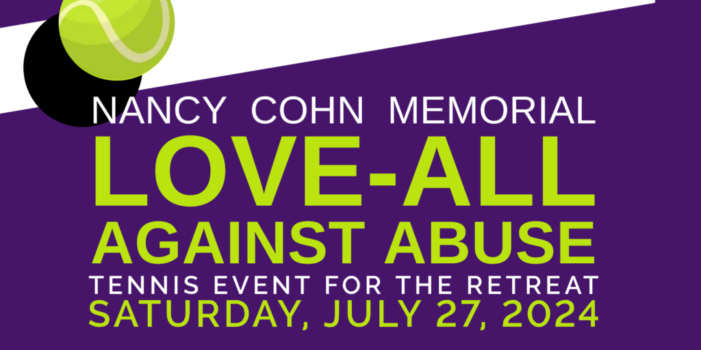 The Retreat is delighted to invite you to the annual Nancy Cohn Memorial Love-All Against Abuse Tennis Event on Saturday, July 27, 2024, from 2:00 PM to 5:00 PM at Sportime Amagansett.
