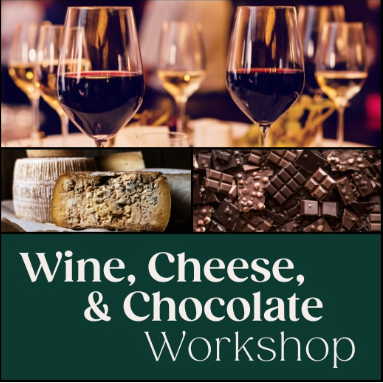 Join us for an exploration of Wine, Cheese, and Chocolate! This interactive workshop is perfect for both curious beginners and wine enthusiasts. Explore how the right combinations can elevate each bite and sip. We’ll guide you through the basics of pairing principles, explaining how textures and flavors work together, while encouraging you to trust your own palate.